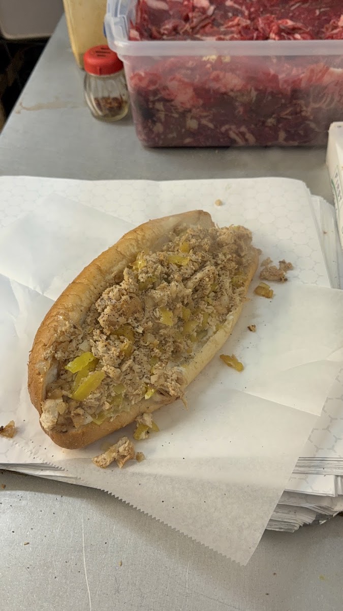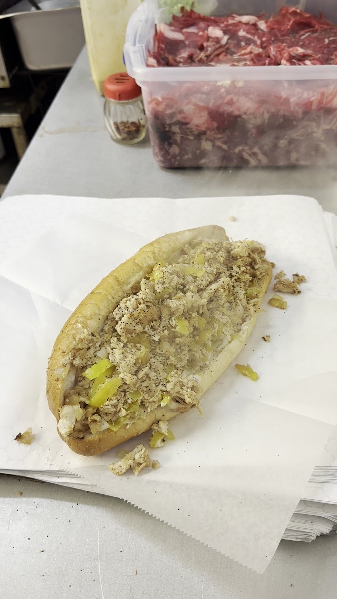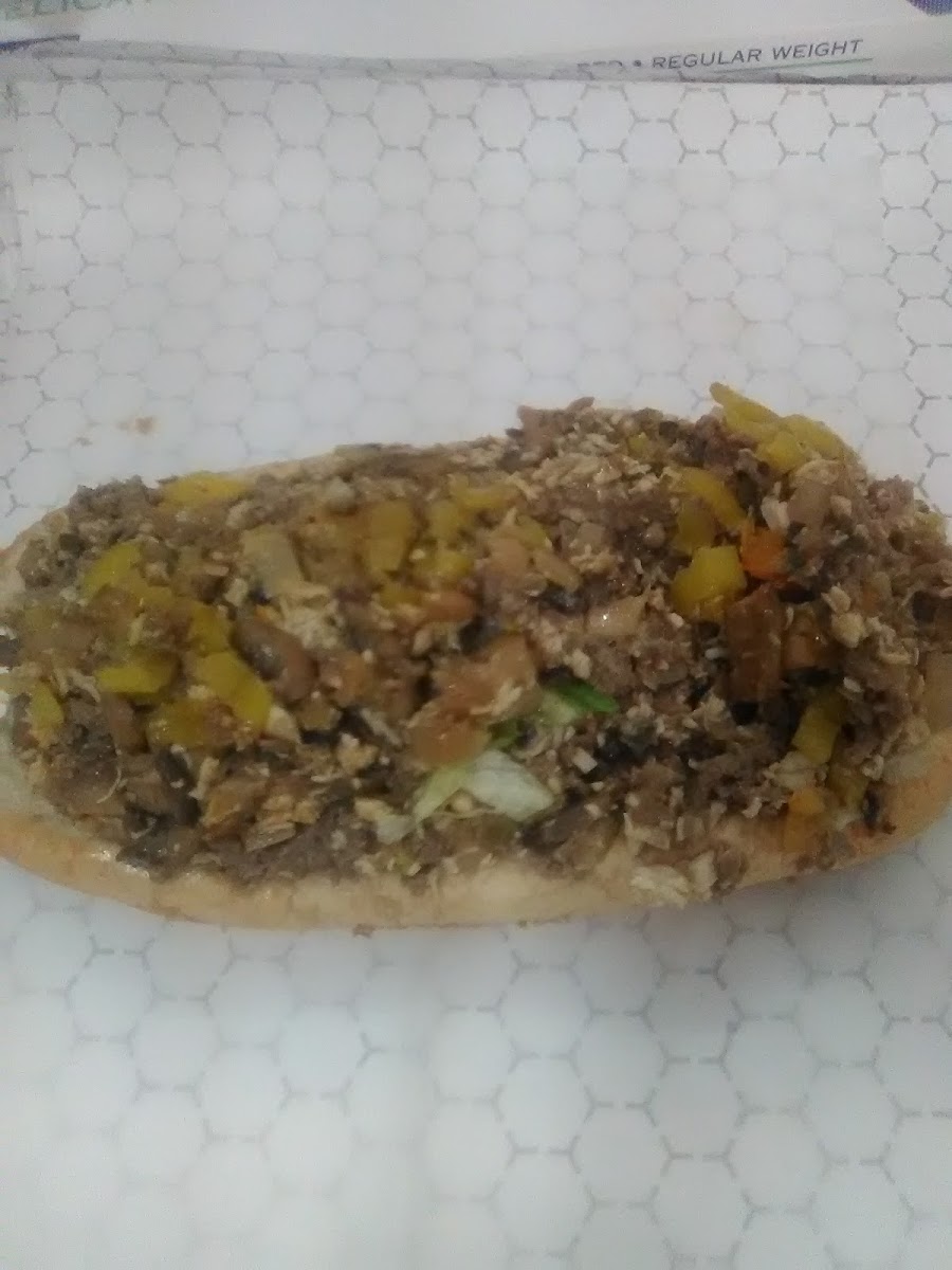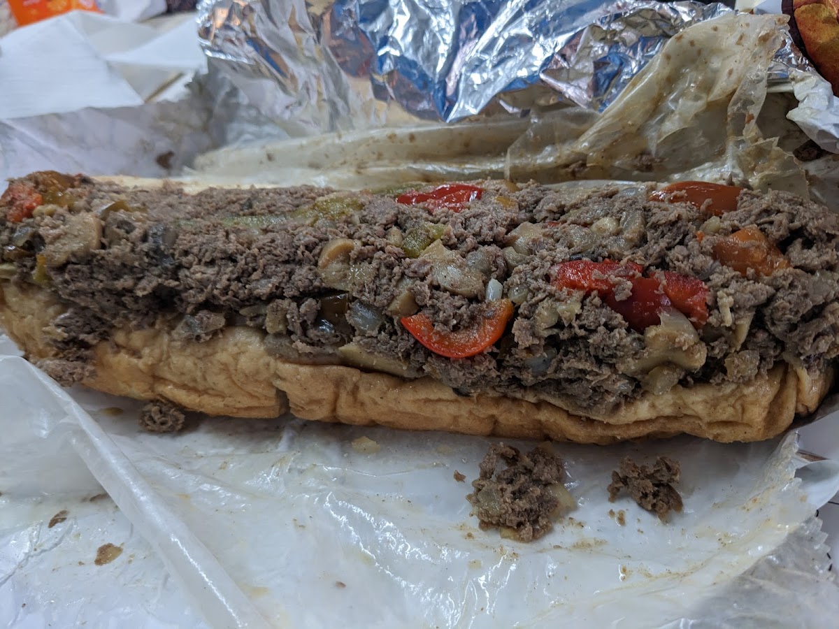 I had the mushroom cheese steak with everything and it was unbelievably delicious. The picture only shows half of the sandwich which I will eat tomorrow because I couldn't possibly eat any more than half. I haven't had that much meat on a sandwich since I moved south. I would recommend this place highly to anybody who's looking for a really good cheesesteak. It definitely a perfect mixture of meat and cheese and just enough lettuce and tomato and onion to accent it. We watched him cut the meat fresh before he chopped it up to cook it. I can't say enough good things about how delicious the sandwich was.